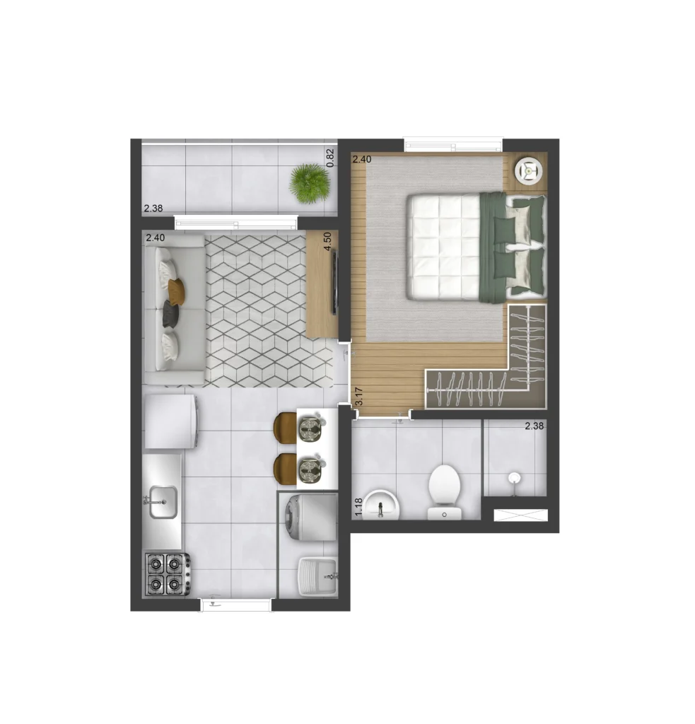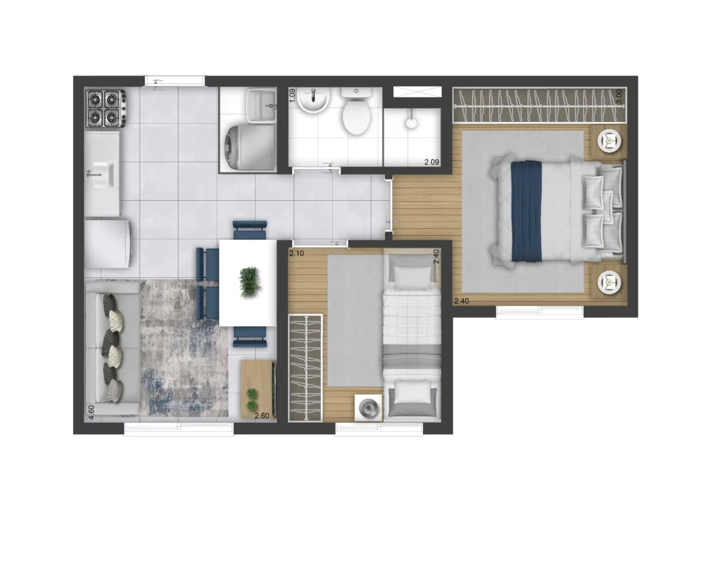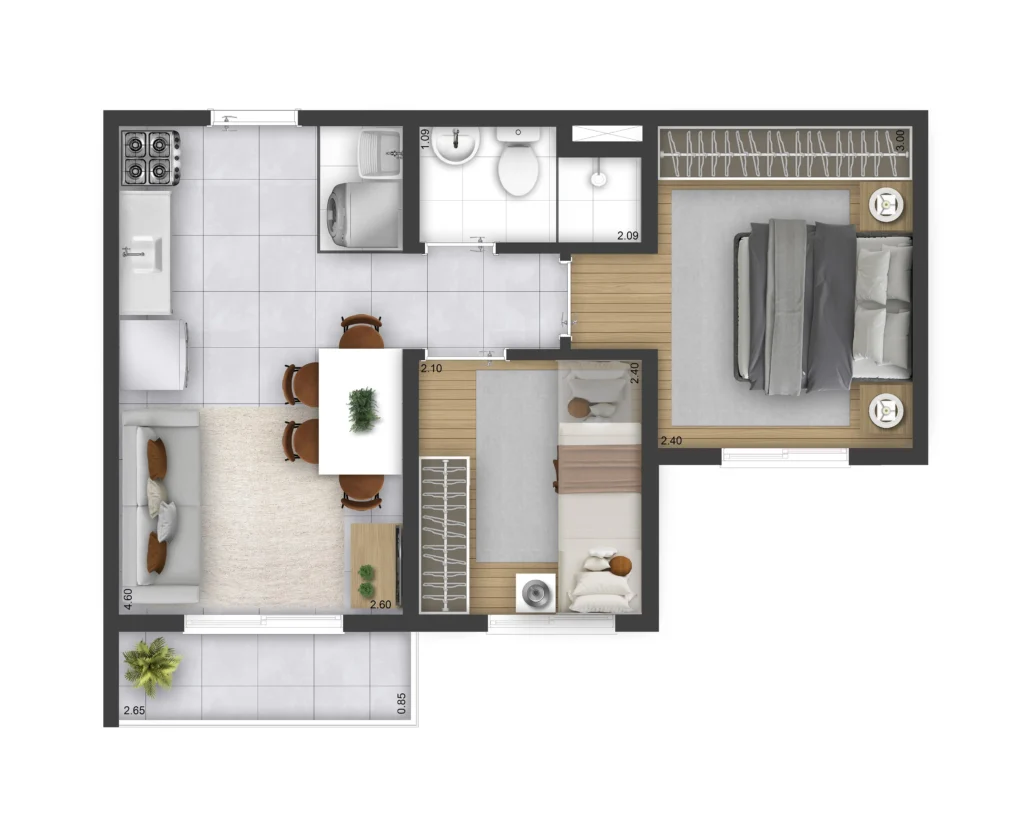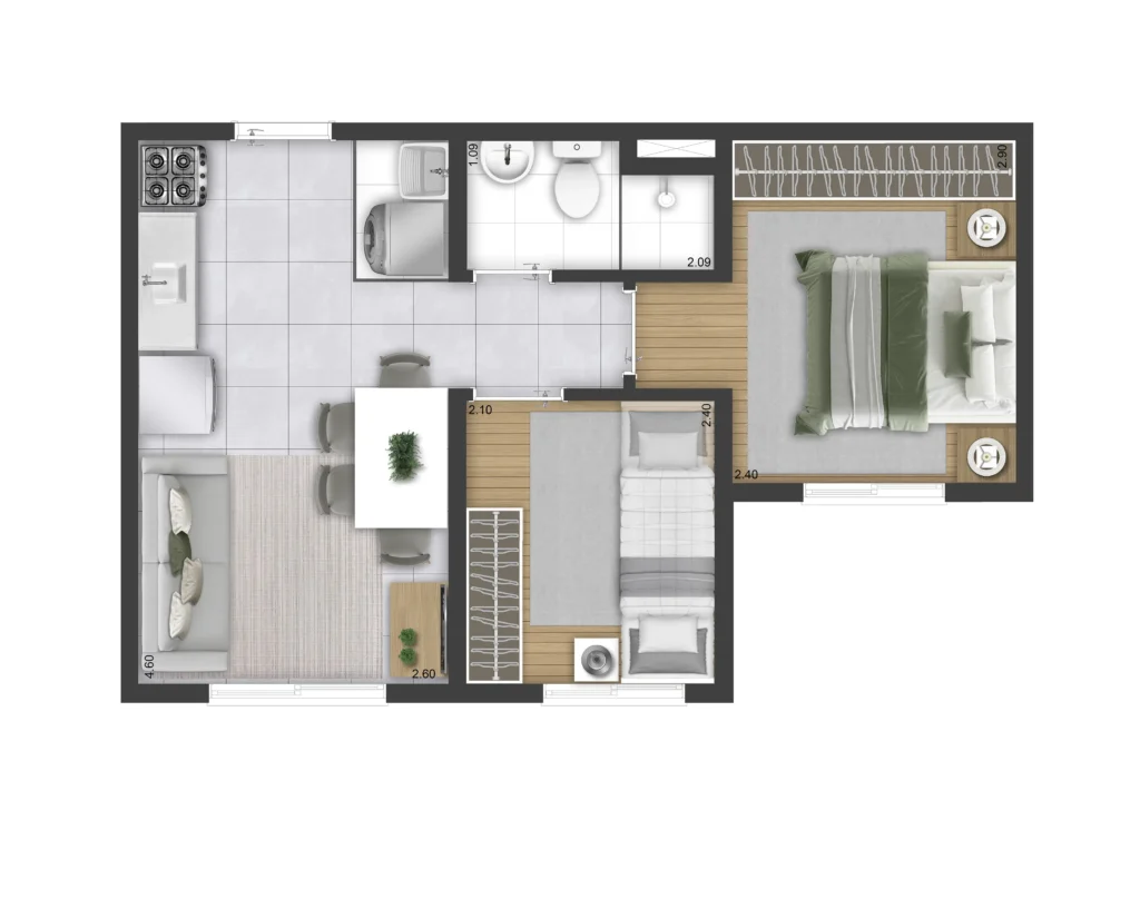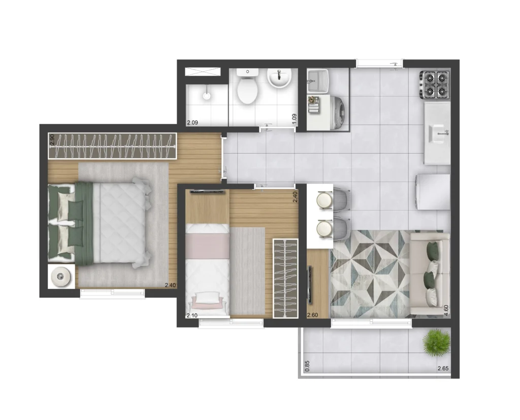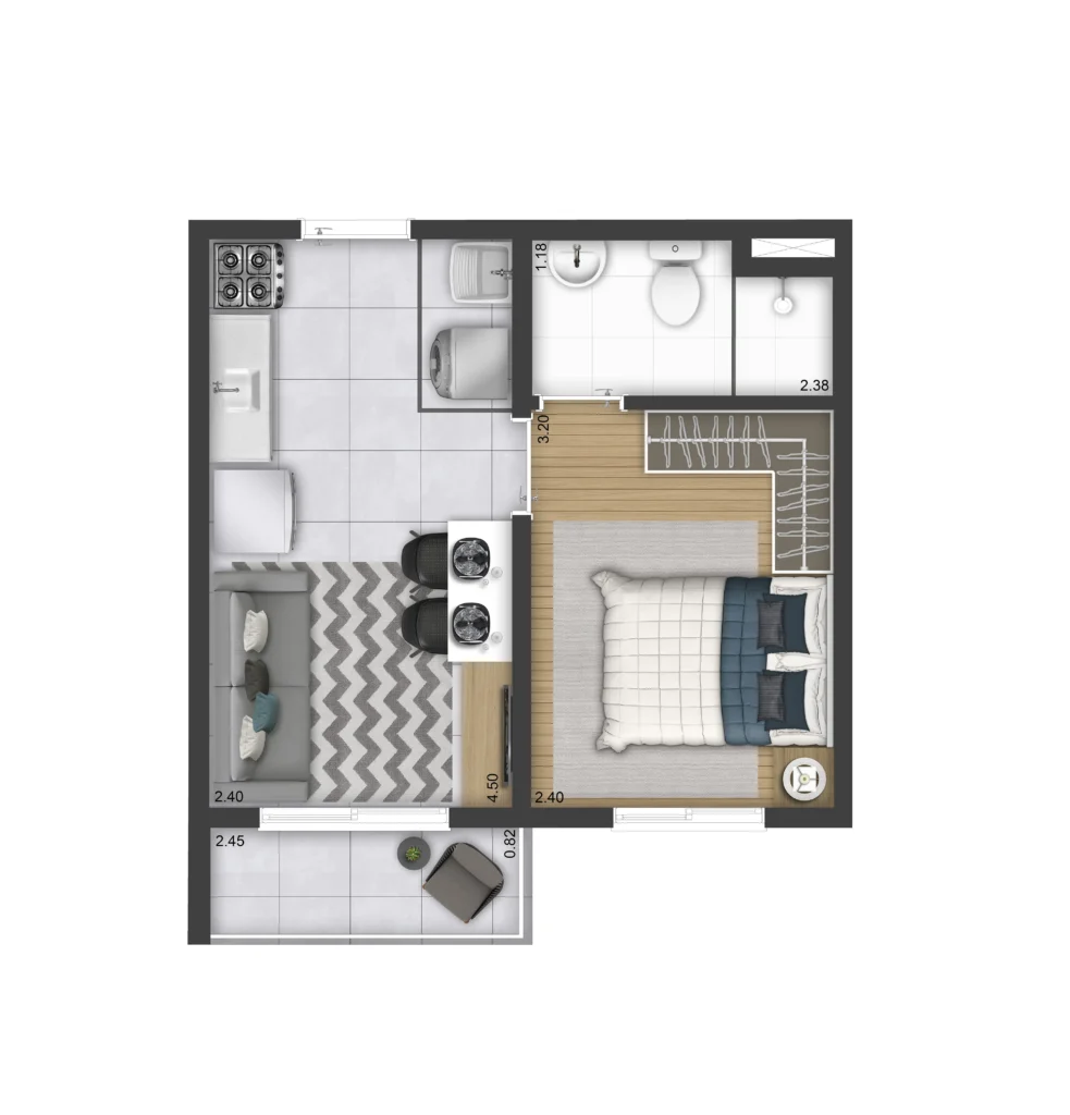 Tipologias: Opções de 1 e 2 dormitórios, atendendo desde jovens profissionais até pequenas famílias.