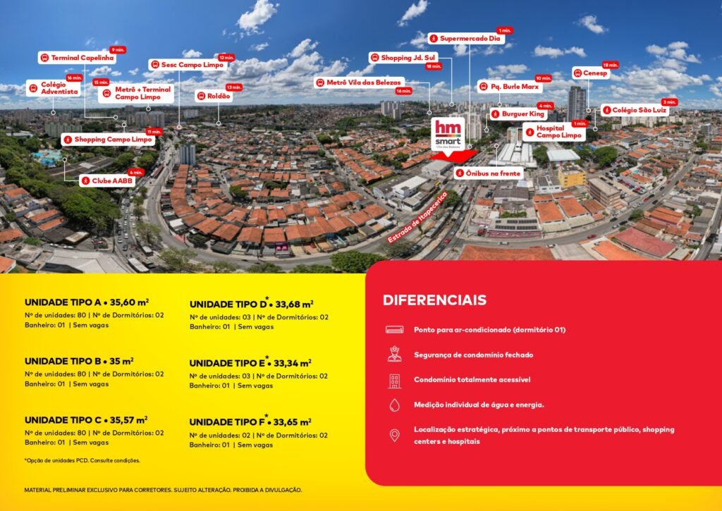 Se você está em busca de sair do aluguel sem abrir mão de qualidade de vida, o novo lançamento da Construtora HM é a resposta ideal. Primeiramente, destaca-se a localização excepcional na Estrada de Itapecirica, 1650, um endereço que coloca você literalmente no centro das facilidades.